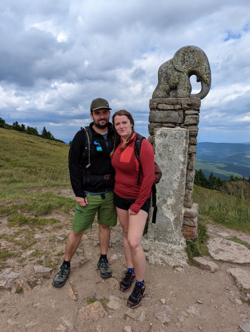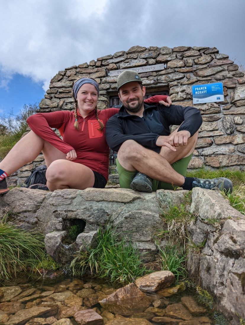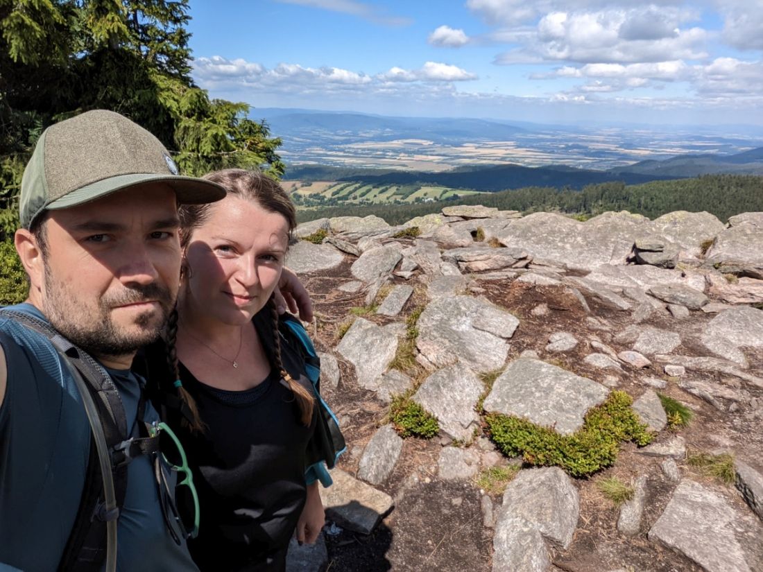 Jeden z výšlapů v Jeseníkách, byla asi 30km trasa na Kraličák. Z parkingu Pod Klepáčem po červené hřebenovce, přes rozhlednu Klepáč až na Kraličák. Jedna z relativně málo využívaných tras, nepotkali jsme skoro nikoho. Za to Kraličák byl zaplavenej lidma, ale neskutečně. Takže jsme velmi rychle vypadli pryč. Docela jsem se divil, že k té hnusné rozhledně šílení Poláci nepostavili aspoň dvě restaurace, takže občerstvení se nekonalo. Jídla jsme, ale moc neměli, takže by se i bejvalo hodilo. Pokračovali jsme po žluté směrem k prameni Moravy a k typickému slůněti, kde už byl větší klid, navíc jsme měli k dispozici osobního fotografa, takže máme relativně pěkné fotky. Z fotky u pramene se pak stala první společná veřejná fotka. Po žluté jsme pak seběhli až do údolí, kde nás čekal nekonečný asfalt směrem na Dolní Moravu.