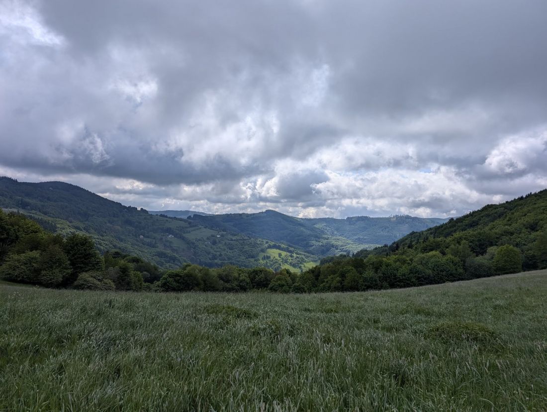 Druhý den brzy ráno, po rychlé snídani z vlastních zásob, jsme startovali znovu do mlhavého počasí. V noci docela pršelo, což nám hlásil i Zdenál, který spal nahoře na Peňažné. Ráno se přesunul k prameni Olšavy, kde na nás čekal. S Čendem jsme si to hned ráno udělali zážitkové a nahoru na modrou jsme to zkusili zkrátit přes pastviny, abychom nemuseli stejnou cestou z Kochavce zpátky nahoru na hřeben. Stalo se přesně to, čeho jsem se obával a to byly ohradníky, které blokovali jedinou cestu, která v mapách nahoru byla. Kvůli krávám a hlavně pak kvůli docela divoce vypadajícím býkům, jsme to museli lehce obcházet, ale nemuseli jsme se nakonec úplně vracet, což bylo fajn. Asi po hodině jsme byli na domluveném srazu se Zdenálem a společně jsme pokračovali dál. Po rychlé domluvě, jsme se rozhodli do Žitkové pokračovat po červené, než padat na žlutou do údolí. Toto rozhodnutí se později ukázalo geniálním, protože nás z této trasy zlákaly ukazatele na odpočívadlo u Hajtmanů, kde jsme strávili krásnou snídani s domácím pečivem, buchtama, kafem a samozřejmě taky pivkem a s domácí kořkou jako bonus na závěr. Toto místo musím jednoznačně doporučit a viditelně je velmi oblíbené, protože lidí tu bylo hafo. Ten den nás čekalo jen něco přes 20 kiláčků a tak nebylo kam spěchat. Cesta do Hrozenkova i následné stoupání po žluté na horskou chatu Vyškovec, kde jsme ten den měli cíl, bylo pohodové a fajn. V chatě jsme byli hodně brzo, abychom stihli hromadu piv, super večeři a u toho sledovat i hokej. Výhledy ze zahrádky této chaty jsou k nezaplacení, a i když bylo sotva pár stupňů nad nulou a hodně foukalo, neodradilo nás od chvilkových posezeních. Co nás překvapovalo víc a víc, byla všude přítomná Plzeň, což min. v Sidomii, kde je 5 a půl obyvatele, docela překvapilo. V cíli druhého dne to bylo lehce přes 20 kiláčků a 800 výškových. Byli jsme rádi, že na nejtěžší a nejdelší úsek máme dostatek času na regeneraci a odpočinek. Tak jak jídlo bylo na chatě Vyškovec super a kuchař, když pominu, že to je notor, vaří skvěle, ubytování je slabší a člověk nedostane ani ručník. Přístup a prostřední ale domácí a hřejivé. Takže jsme rozhodně odcházeli spojení, ale rozhodně doporučuji zvážit ještě pár kiláků popojit. Možností ubytování je víc.