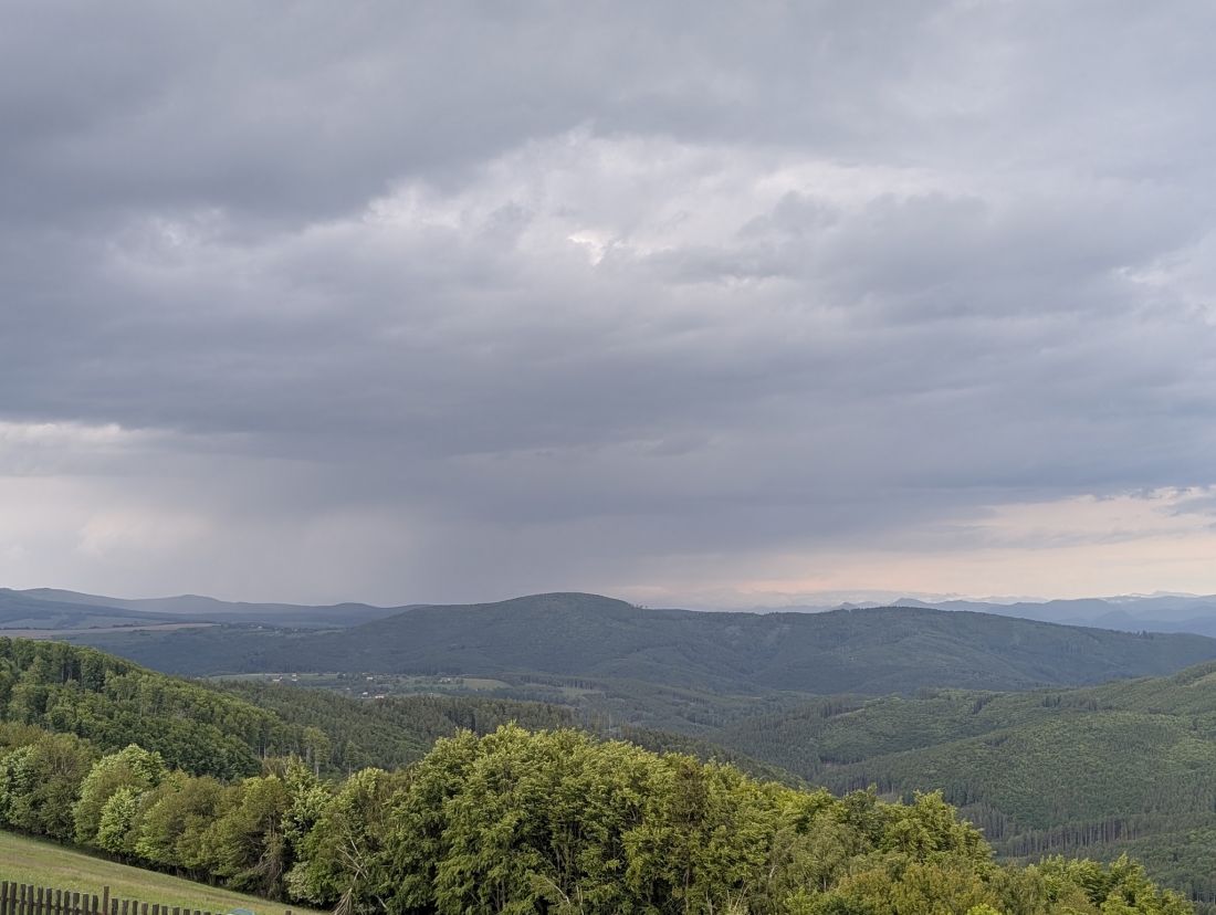 Původní plán startovat až po obědě z Nedašovi Lhoty, který by byl dost smělý a 30 kiláků za odpoledne by bylo hodně na knop, jsme vyměnili za dopolední příjezd vlakem do Brumova, odkud jsme po žluté začali stoupat na hřeben a plánovanou trasu odkud se nám otevíraly první výhledy. Také se nám, ale začalo kazit počasí, sem tam sprchlo a víc než výhledy jsme viděli mlhu. Hodně rychle se to ovšem měnilo. Znalost finální lokace krabičky, protože owner kamarád, nám umožnila si ještě několikrát lehce upravit trasu. Což nám rozhodně neubralo na celkových kilometrech, jen to logisticky lépe vycházelo a mohli jsme si sem tam vybrat jiné oblíbené lokace. Zatím, co Zdenál si hned na začátku udělal menší zacházku na Chmelovou, my s Čendem jsme pokračovali nekonečnou Sidonií dál, protože jsme potřebovali na ubytko v Kochavci, což se ten den ukázala jako jediná ideální možnost, dojít v rozumnou hodinu. Ve Vlárském průsmyku to pak bylo rychlé jídlo i pivo a pak táhlé stoupání na Javorník. Z červené jsme s Čendem udělali pár zkratek za šipkou, které byly možná kratší, za to výrazně horší a zcela určitě na víc času. Zdenál ten už nás ten den nedohnal, což v rámci toho, že chtěl spát v lese, ničemu nevadilo. Vrchol Javorník překvapil, jak moc je utopený v lese, za to dál a dál se otevíraly krásné výhledy a i počasí dostávalo daleko příjemnější formu. Konečně jsme měli radost z pěkného počasí a hor a těsně za vrcholem Peňažná jsme začali s Čendem padat do vesnice, kde nás po 32 kilometrech a přes 1200 výškových metrech čekala zasloužená postel. S ubytováním byl stejně problém, protože jsme došli pozdě, ale nakonec se zadařilo.